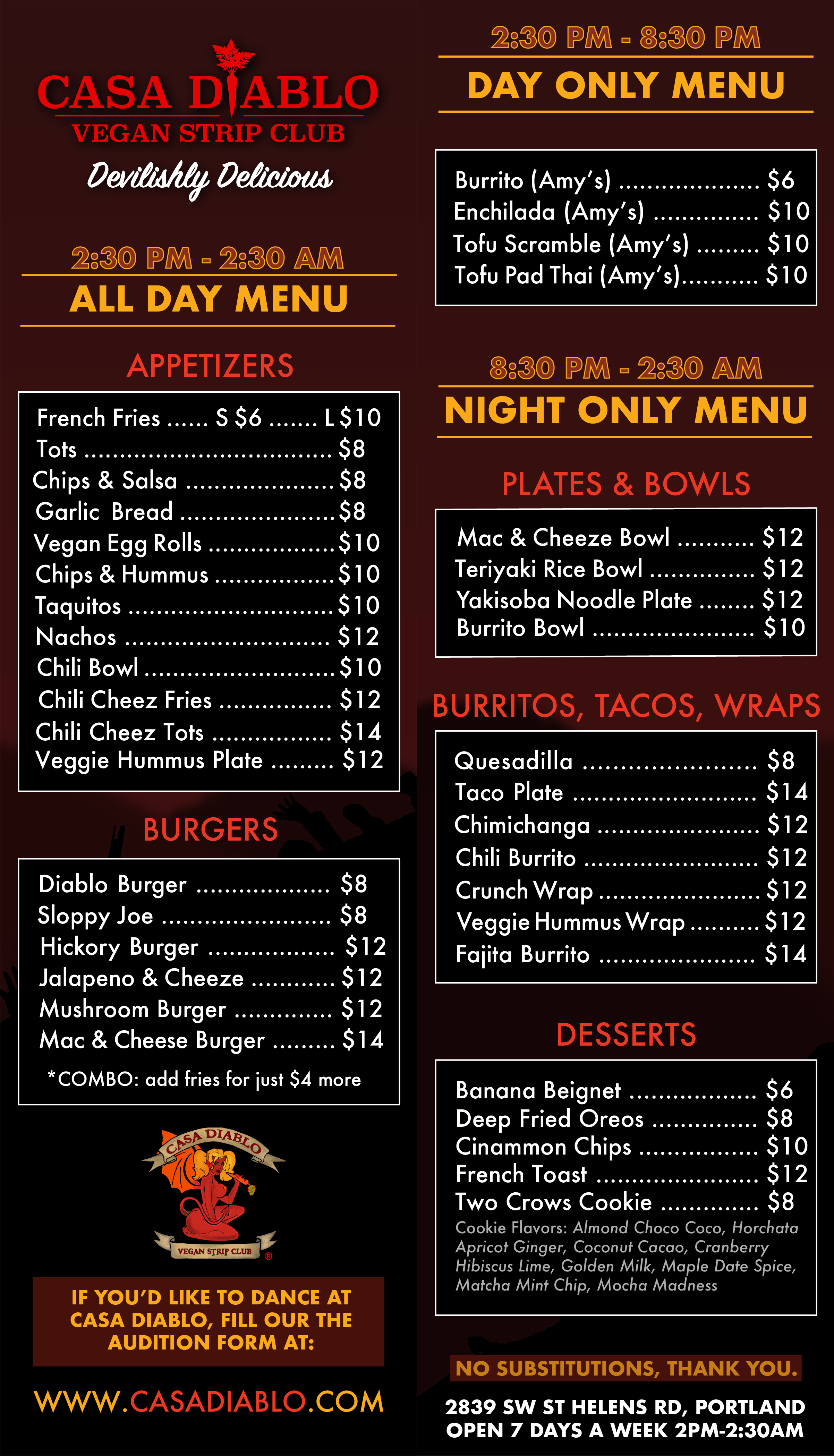 Variety of menu designs for Casa Diablo from 2019-2024.